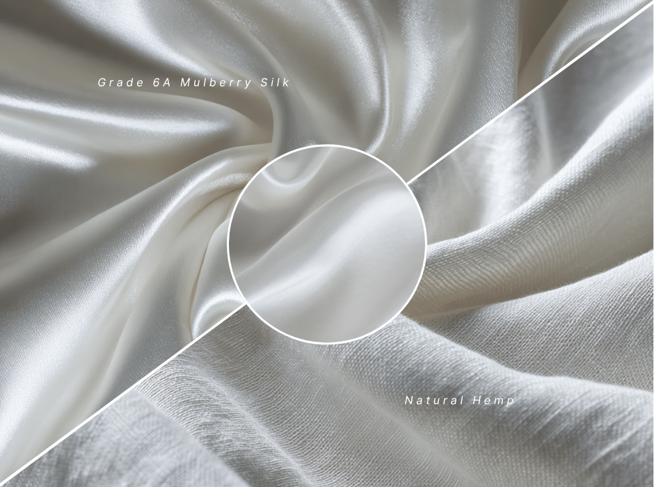 ✓ Smart Thermoregulation: EnduraSilk™, crafted from our signature hemp and mulberry silk blend, naturally adapts to your body temperature, keeping you cool when you're warm and snug when you're cold, perfect for sweat-free sleep.