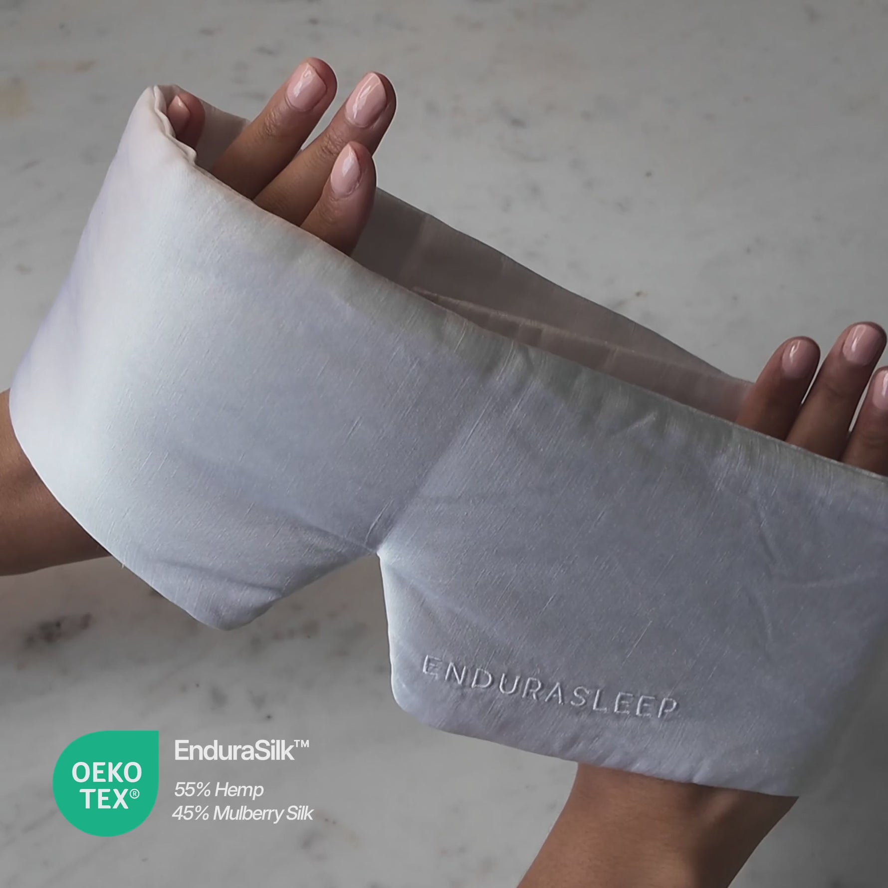 The EnduraSilk™ sleep mask blends Grade 6A mulberry silk with durable hemp fibers for a luxuriously smooth feel that lasts. Naturally breathable and thermoregulating, it keeps you cool in summer, comfortable in winter, and blackout-ready every night.